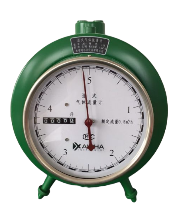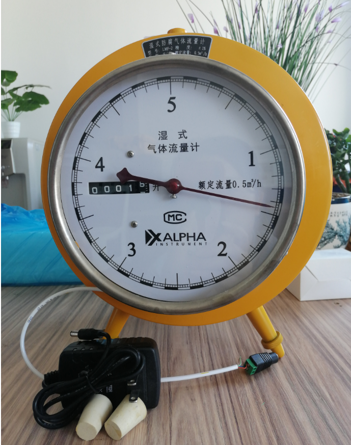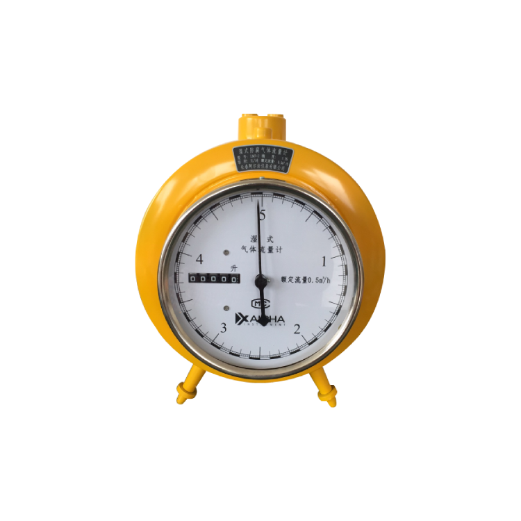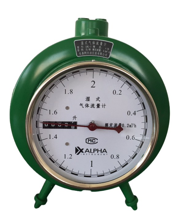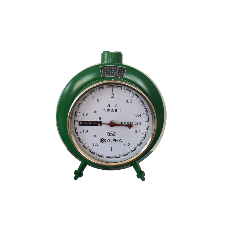 湿式气体流量计是实验室常用的仪表之一。在测量气体体积总量时,其准确度较高,特别是小流量时,它的误差小。可直接用于测量气体流量,也可用来作标准仪器检定其它流量计。 湿式气体流量计每个气室的有效体积是由预先注入流量计的水面控制的,所以在使用时必须检查水面是否达到预定的位置,安装时,仪表必须保持水平。
